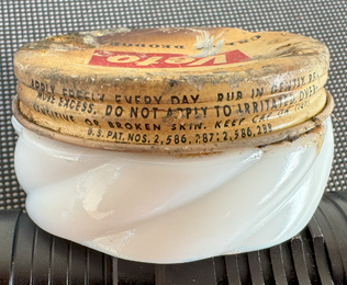 1950s swirl milk glass deodorant cream (top photo)