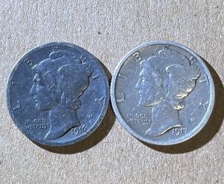 1916 & 1917 Mercury Dimes (obverse)