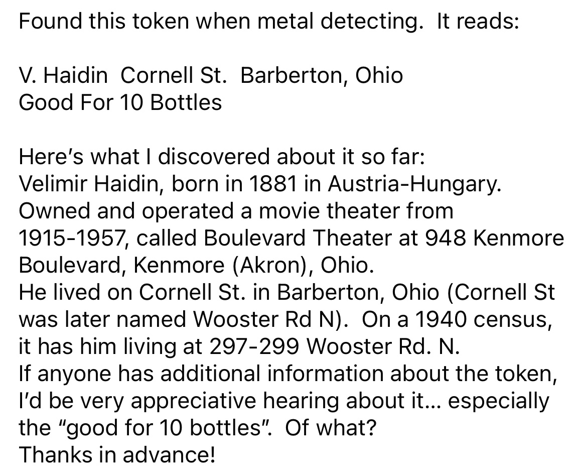 1940s token (reverse)