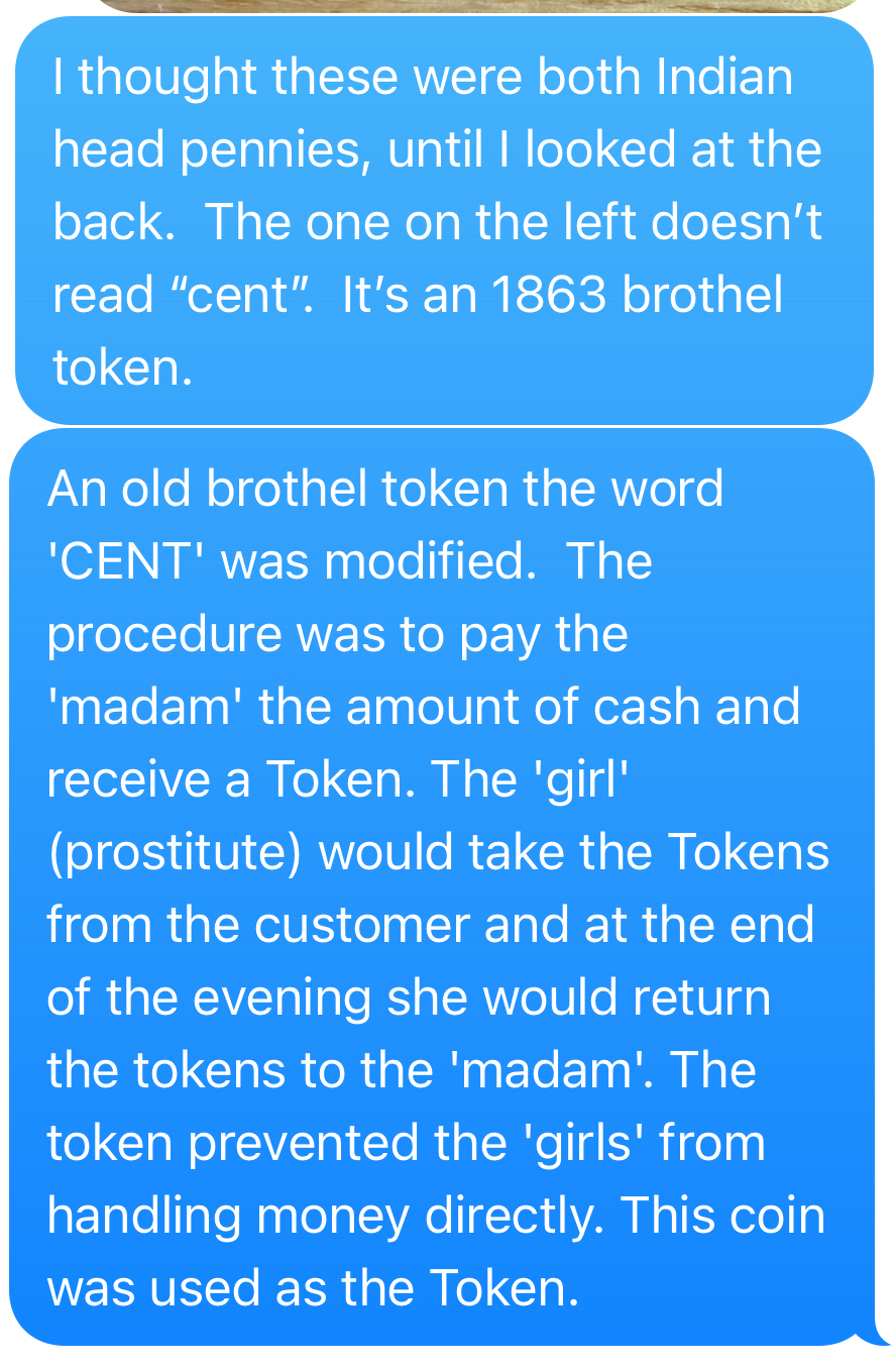 1863 token / 1870s Indian (reverse) (info here)