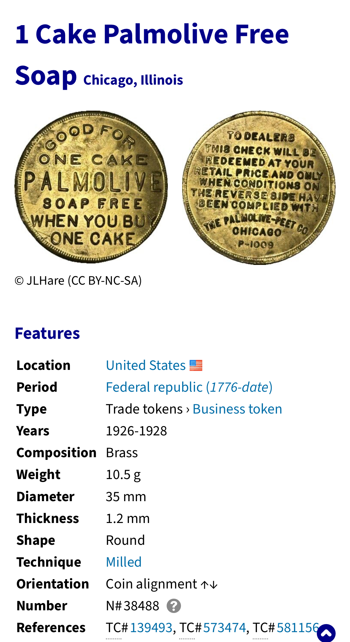 1863 CW advertising token (obverse) (info here)