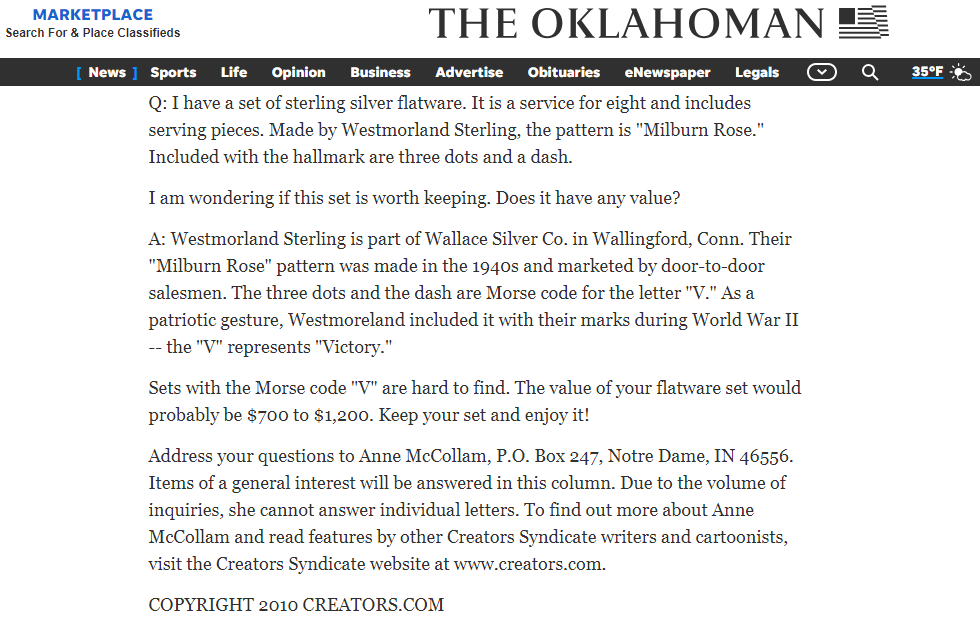 1940s six-inch Sterling Silver spoon (back) (info here)