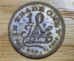 1863 C.W. store token (reverse)